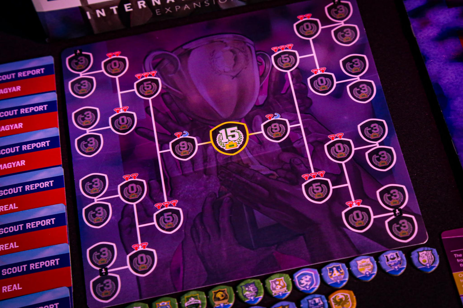 For the first two Weeks, the game does not differ from the standard game, however, starting from the third Week, you will play two matches a week - one on Wednesday and the second, traditionally, on Friday. Cup matches follow the same rules as regular matches with a few exceptions. As always, you can assign Fan Base markers to the stands, or you can normally discard Injury and Suspension tokens from your cards. At the same time, assigning a Player to a Match will not require you to spend Fitness.