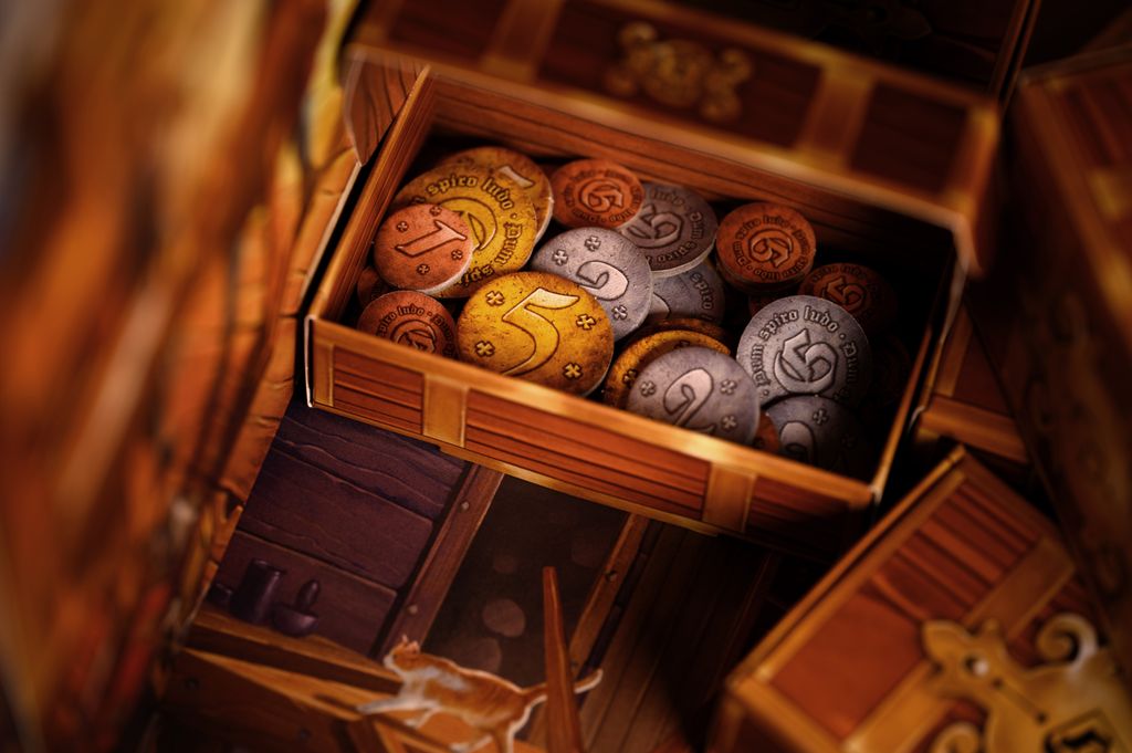 By bidding for specific actions, players will develop their workshop, acquire new fonts, inks and decorations. The unique system of rotating gears allows you to combine bonuses and earn a large number of points.