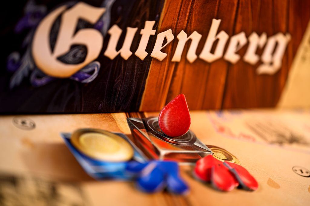 • Gutenberg is a board game for 1-4 people in which players will play as the pioneers of printing in the 15th century. By carrying out orders, they will build their wealth and fame. By improving their printing workshops and gaining the support of patrons, they will develop their production capacity. The game will be won by a printer who boasts the greatest recognition and wealth.