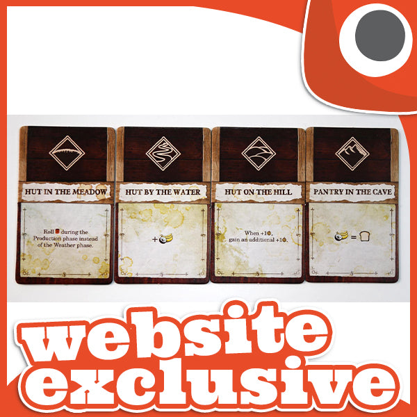 These four Shelter upgrades tiles will allow you to add more flavor and special features for your Robinson Crusoe shelter! Your temporary home is about to get a lot nicer!