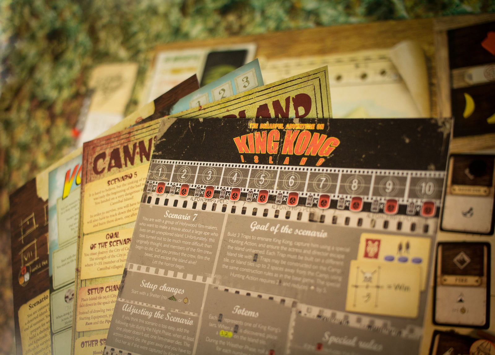 • Robinson Crusoe: Adventures on the Cursed Island is a game created by Ignacy Trzewiczek, the author of Stronghold. This time Trzewiczek takes the players to a deserted island, where they'll play the parts of shipwreck survivors confronted by an extraordinary adventure. They'll be faced with the challenges of building a shelter, finding food, fighting wild beasts, and protecting themselves from weather changes. Building walls around their homes, animal domestication, constructing weapons and tools from what they find and much more awaits them on the island. The players decide in which direction the game will unfold and – after several in-game weeks of hard work – how their settlement will look. Will they manage to discover the secret of the island in the meantime? Will they find a pirate treasure, or an abandoned village? Will they discover an underground city or a cursed temple at the bottom of a volcano? Answers to these questions lie in hundreds of event cards and hundreds of object and structure cards that can be used during the game...